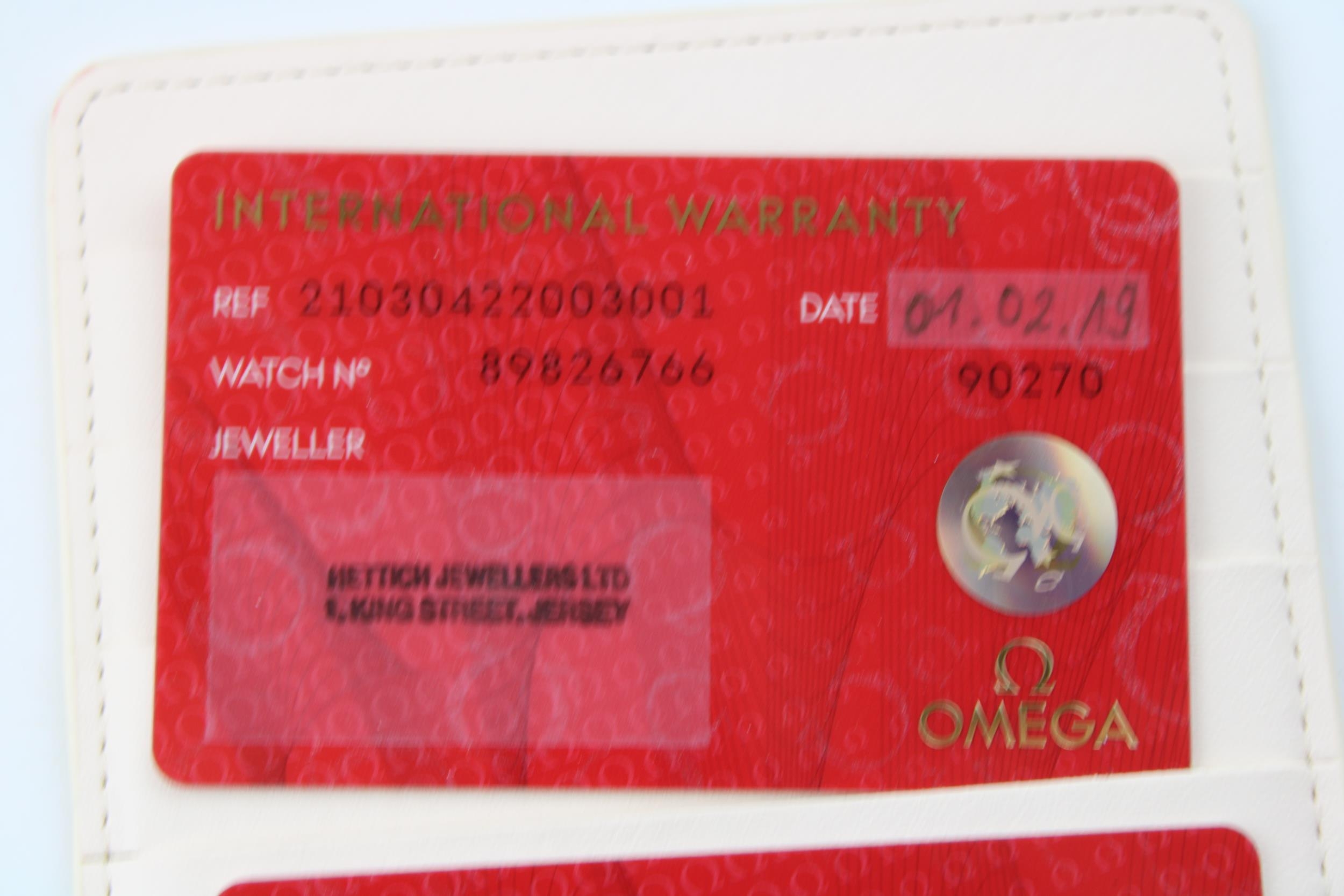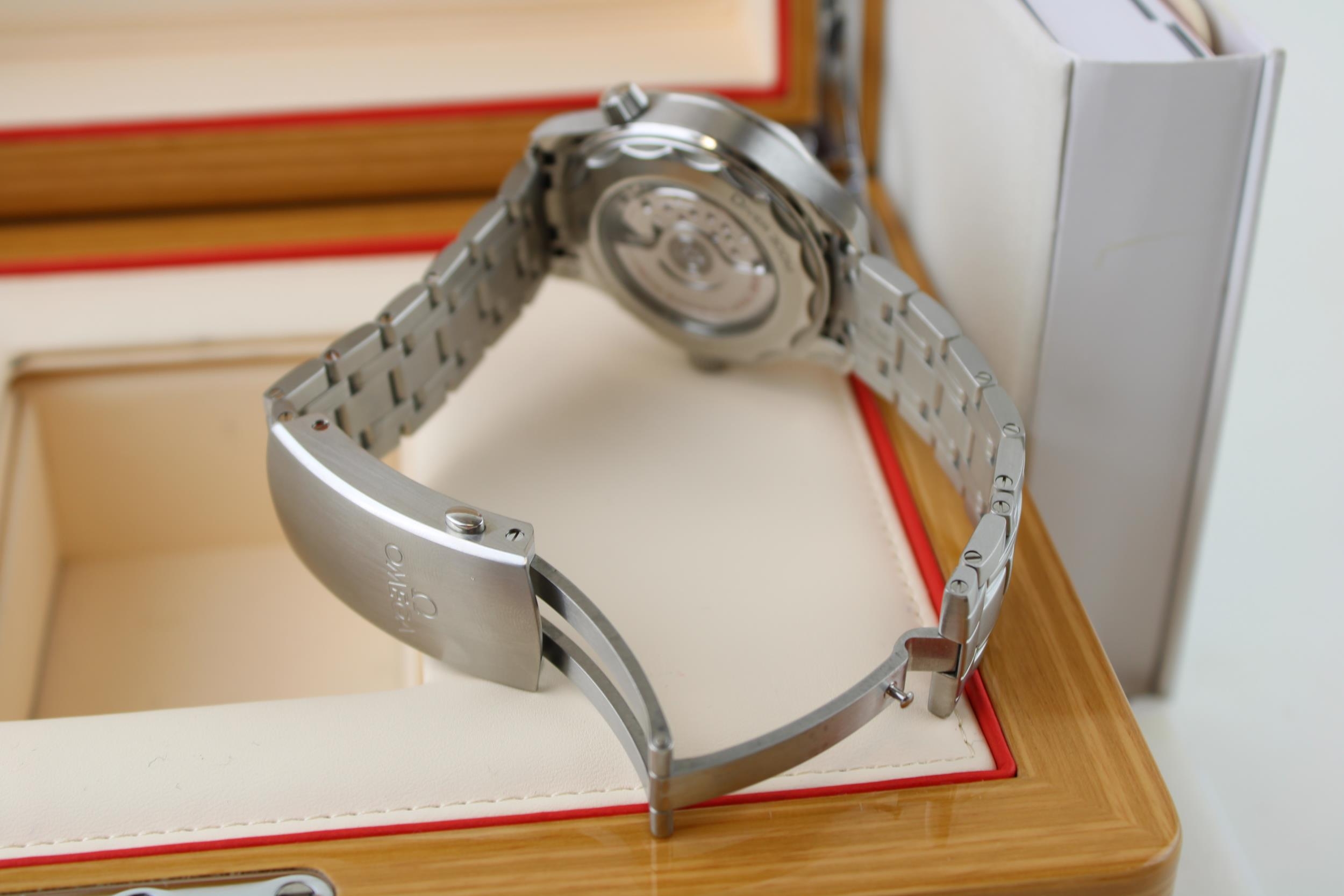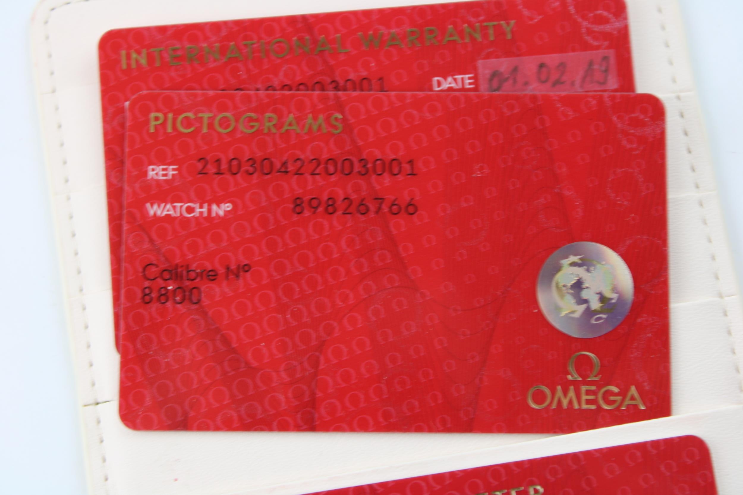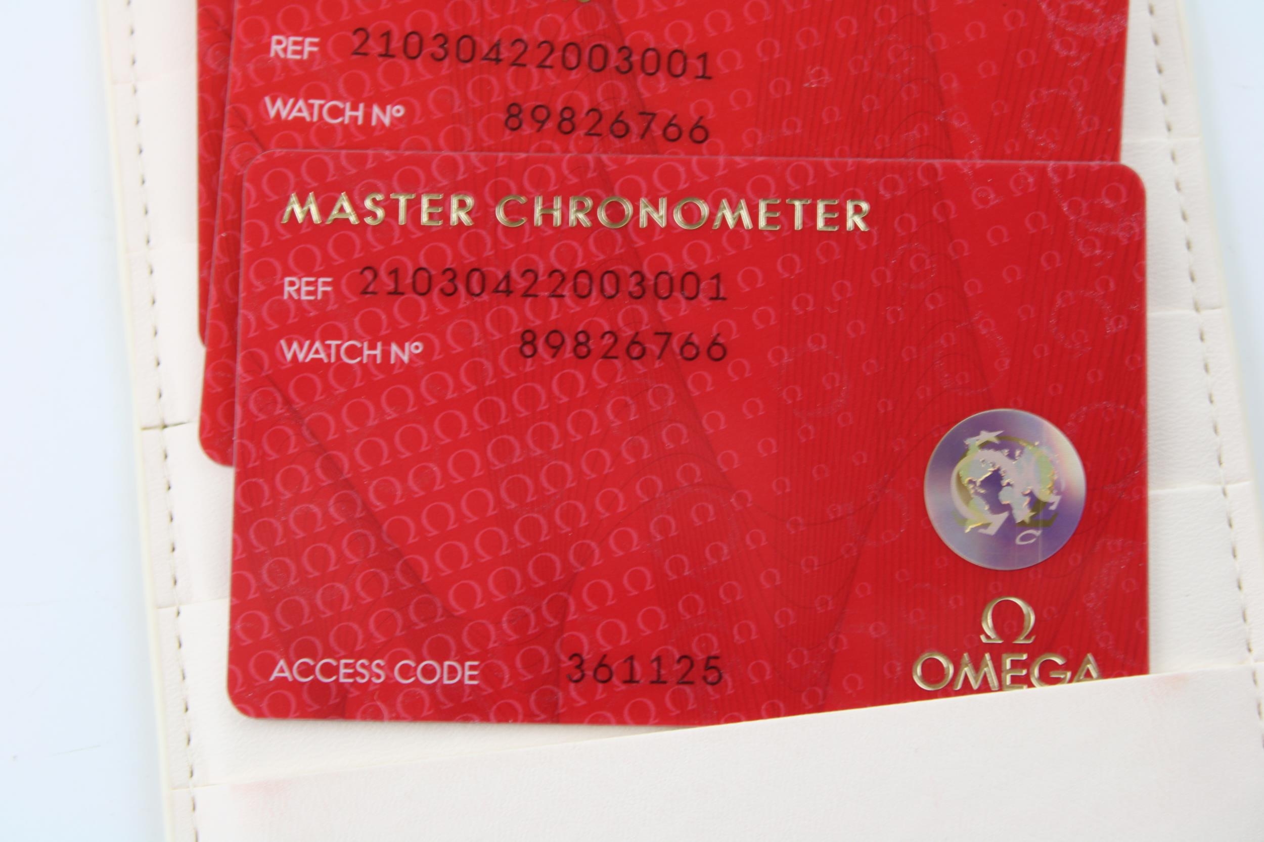 A gentleman`s Omega Seamaster Diver 300 REF 21030422003001Calibre No. 8800 Watch No. 89826766. 2019. Master Chronometer automatic calendar movement. Sweep centre seconds. Blue dial with luminous hour markers, date aperture at six. Stainless steel case fitted to a stainless steel bracelet folding clasp. Sapphire crystal glass. Together with instructions, warranty booklet, wooden Omega presentation box and white Omega outer box. Case diameter 42mm.