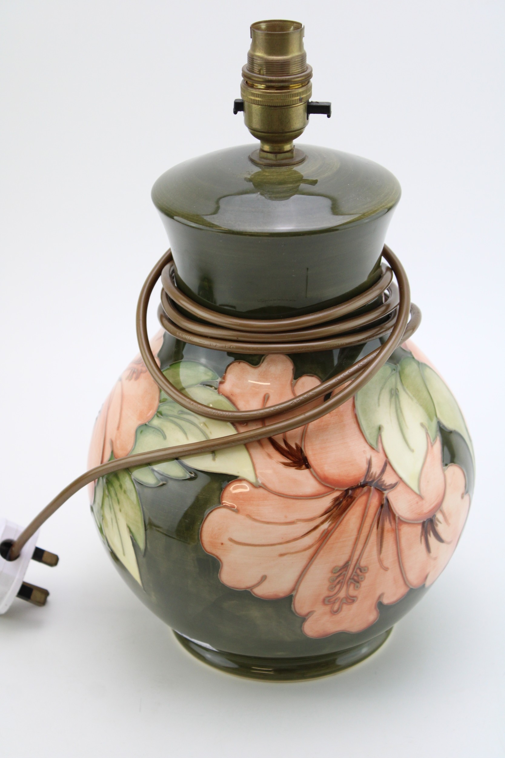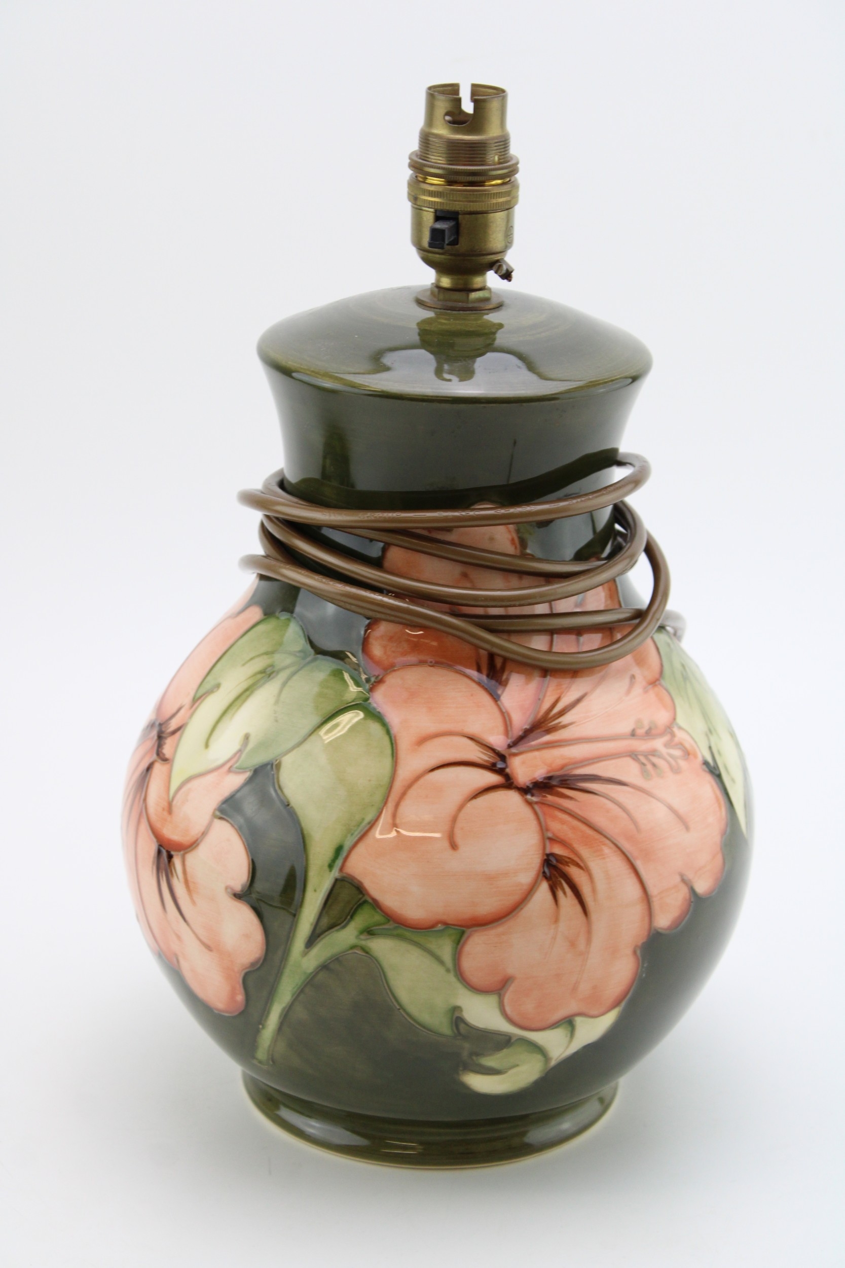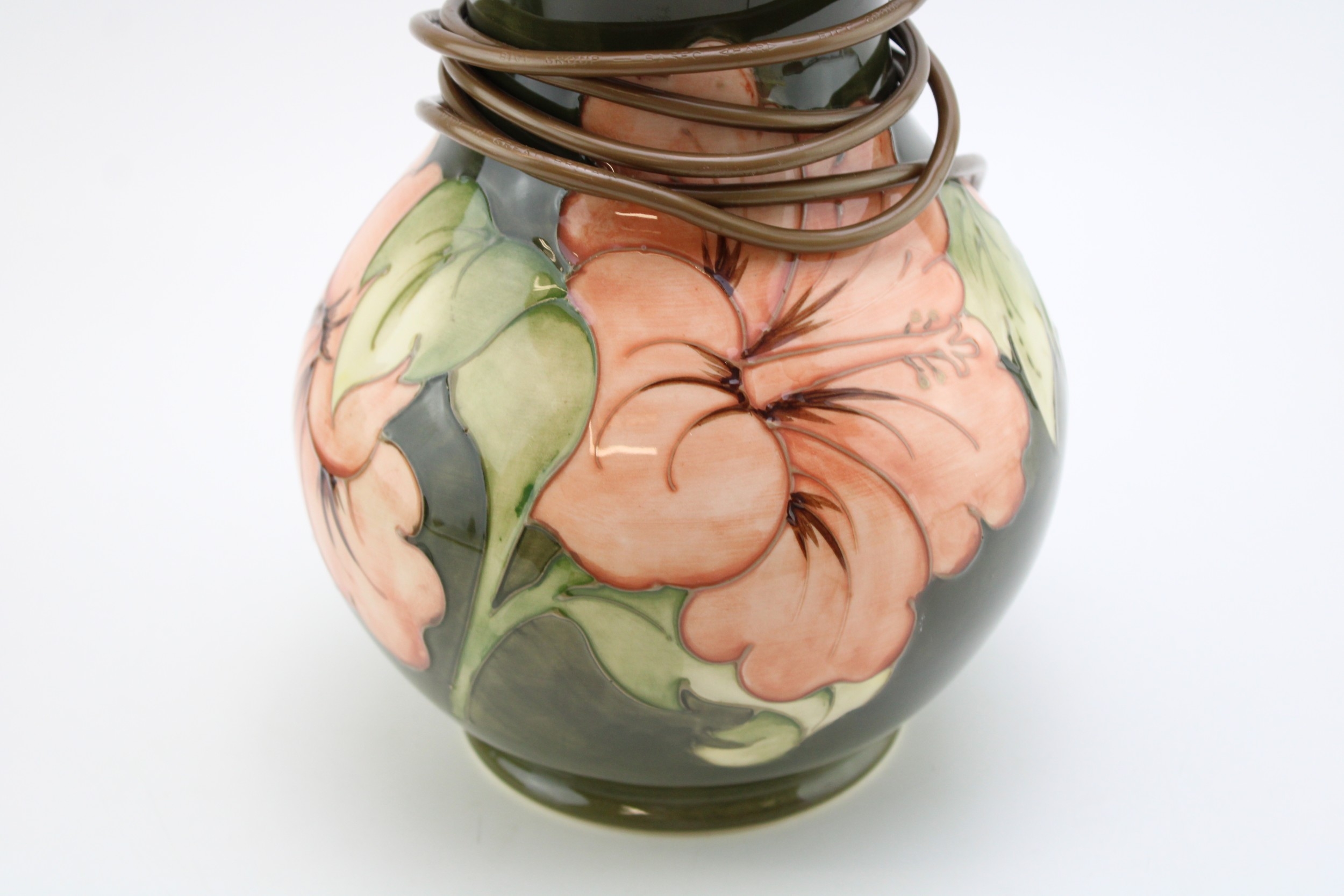 Moorcroft 'Hibiscus' pattern lamp base, 32cm tall.