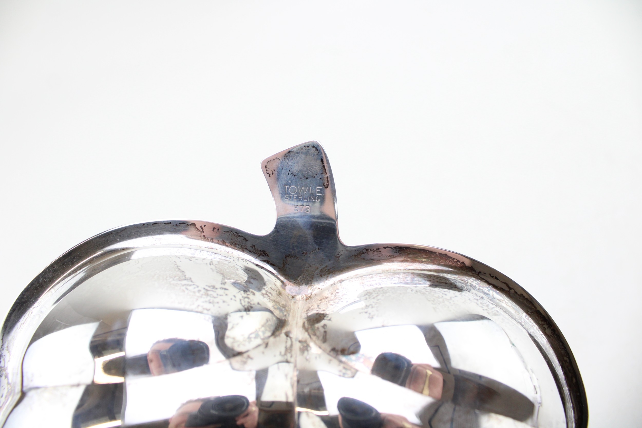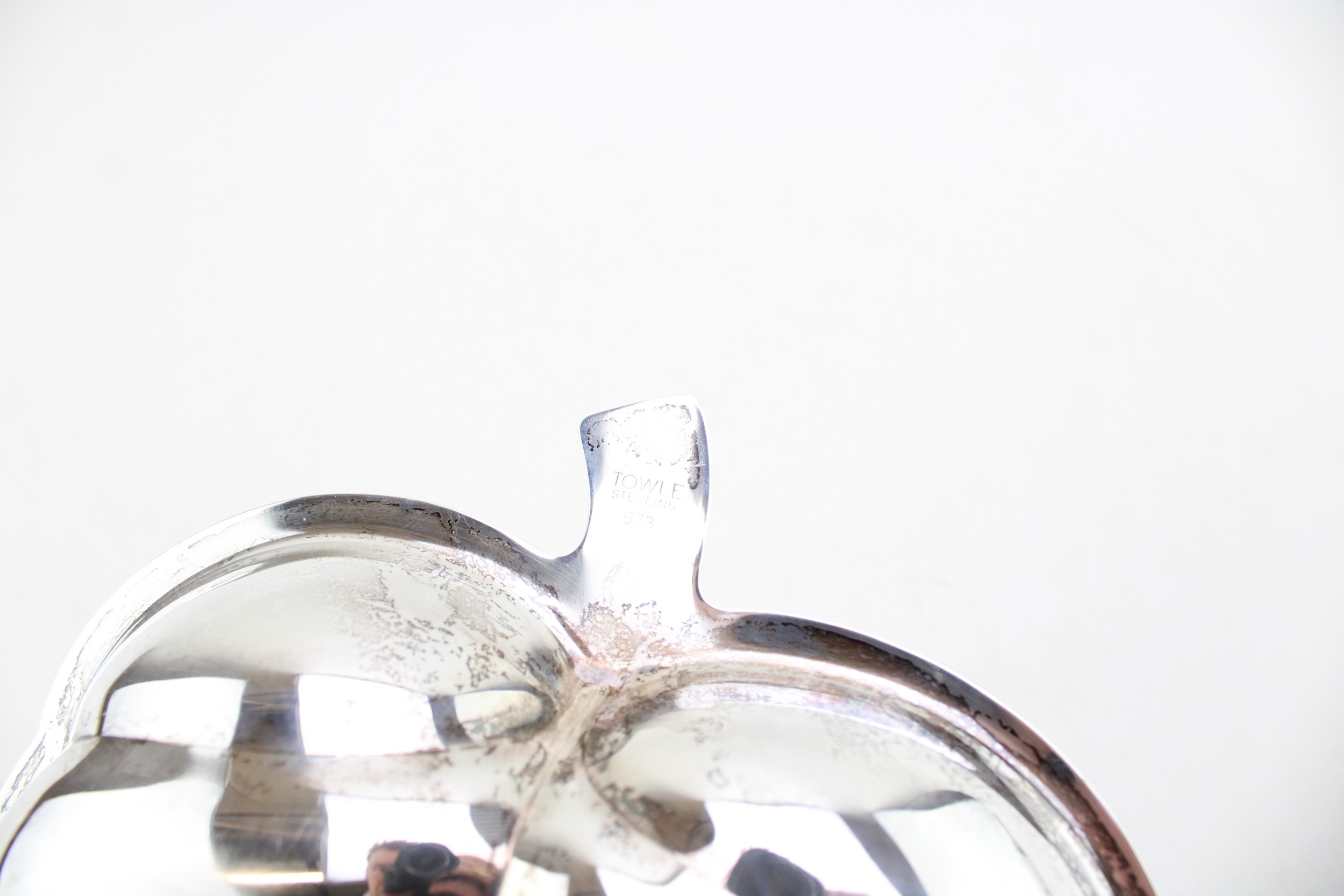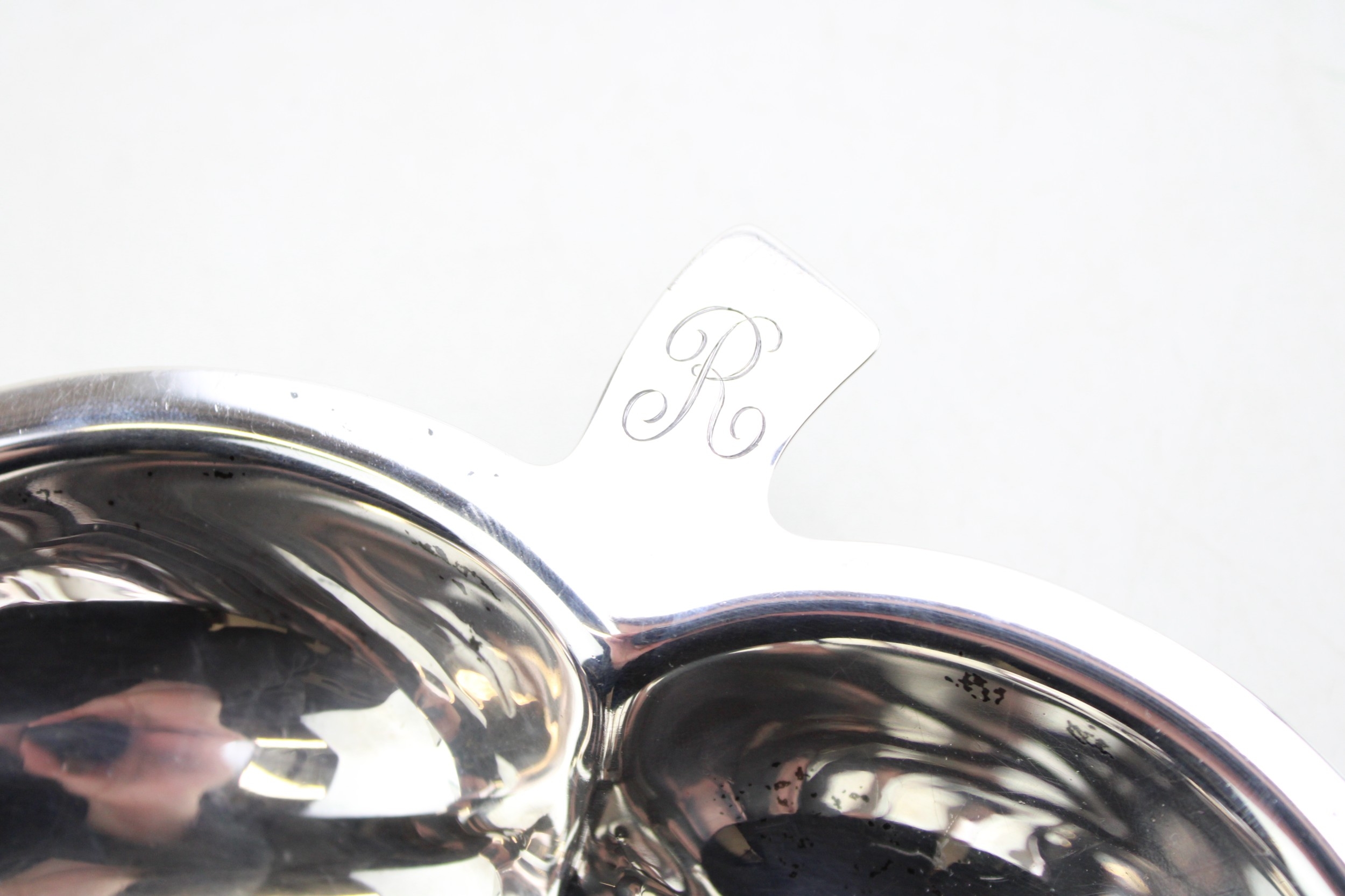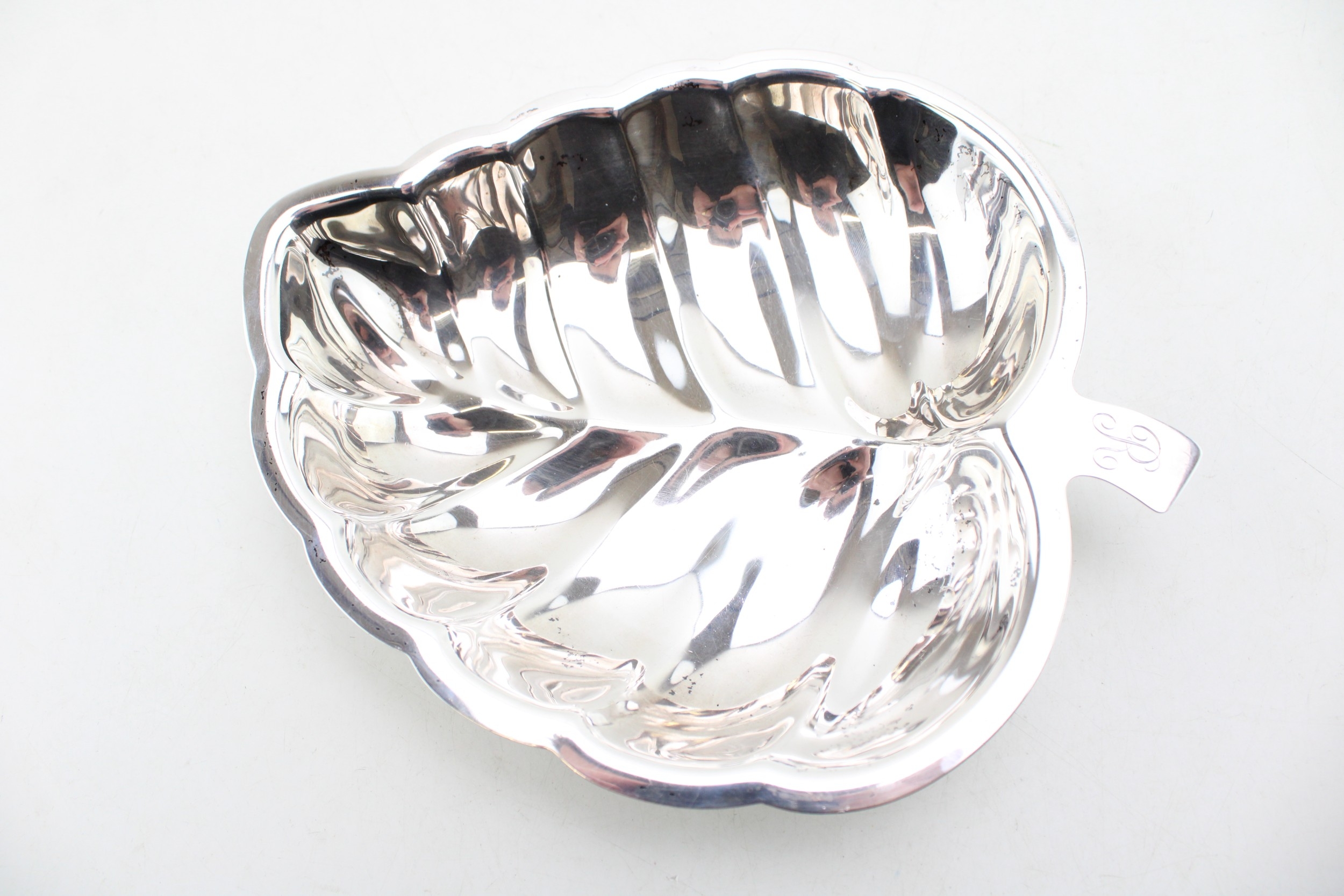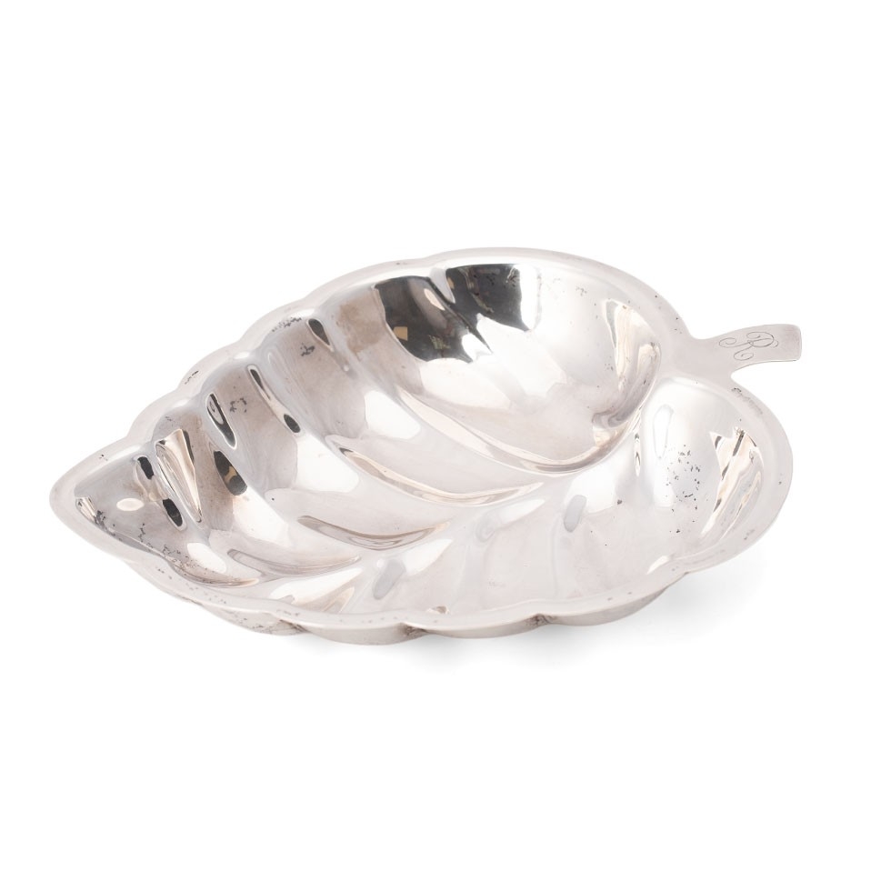 American silver a Towle silversmiths sterling leaf dish, monogram engraved to the handle, marked Towle Sterling 573 verso, 22 by 18 by 3cm high, total weight 321g, 10.32toz.